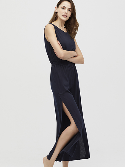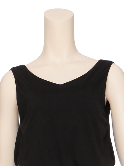シンプルなオールインワンを、大きくあけた背中&膝上まで入ったスリットで、ラヴィジュールらしくセクシーにアレンジ。