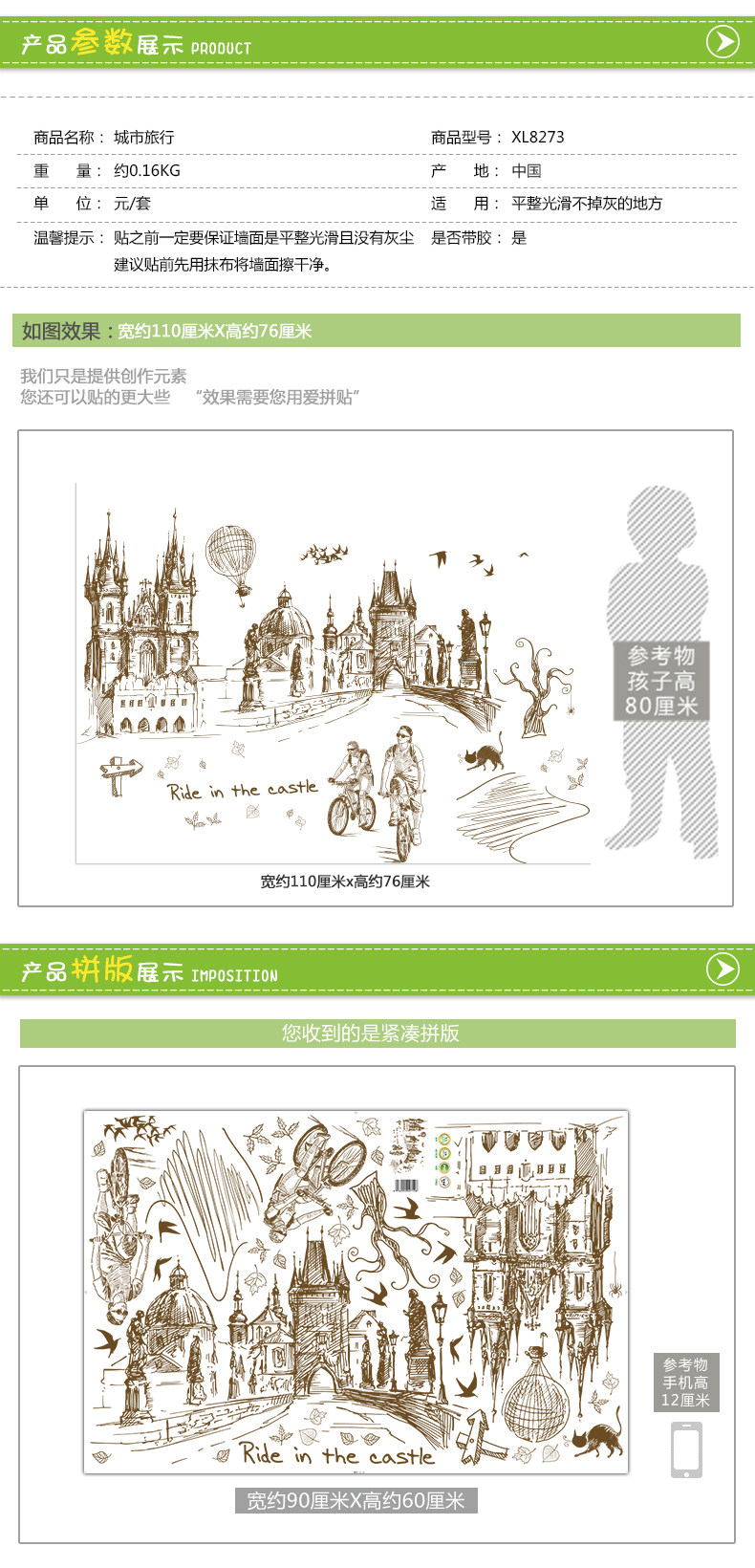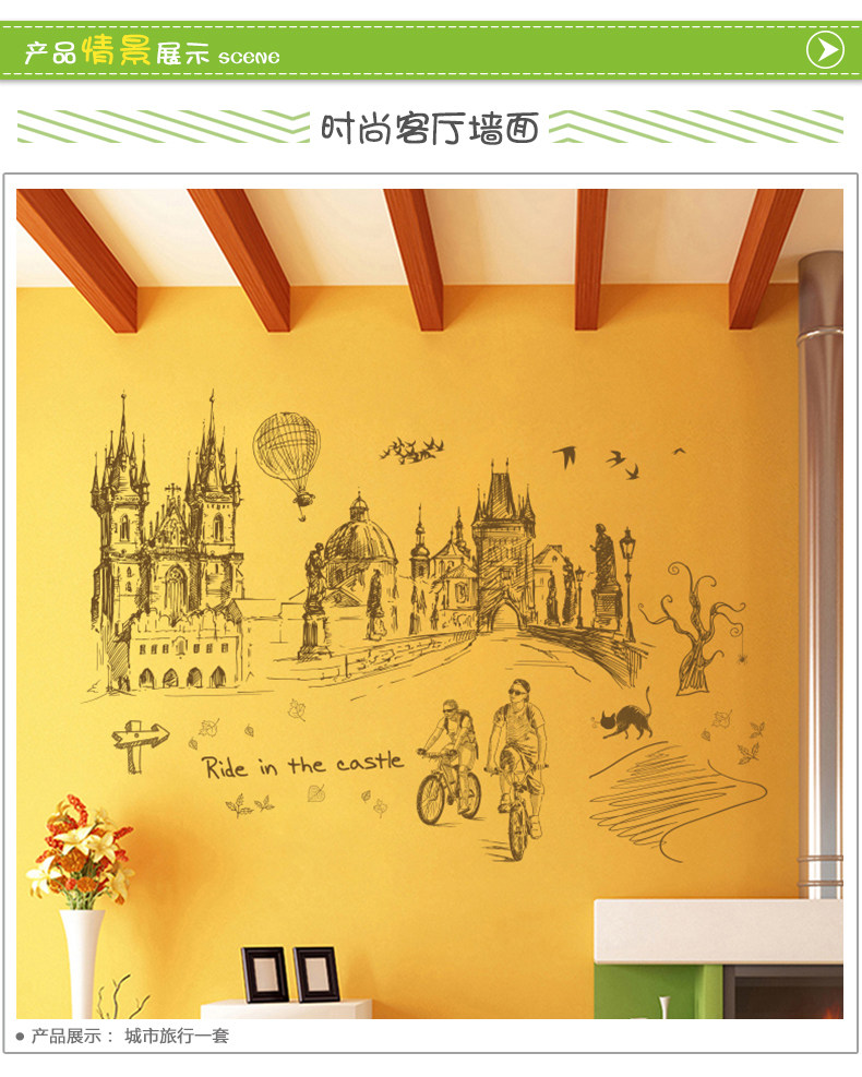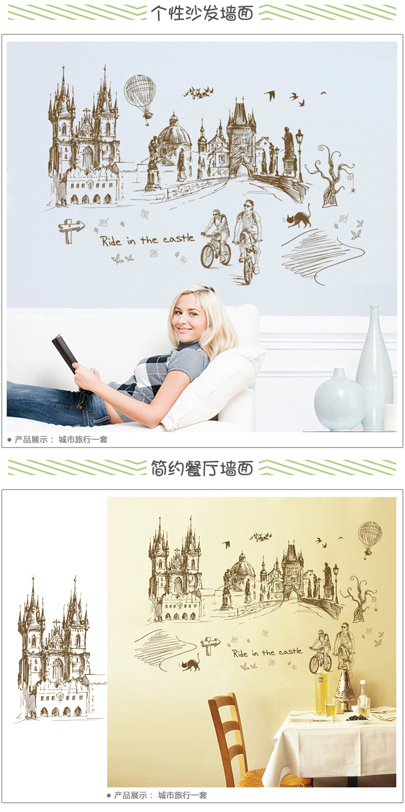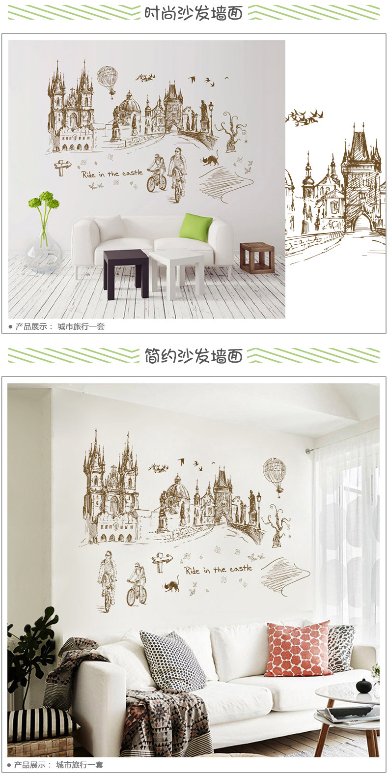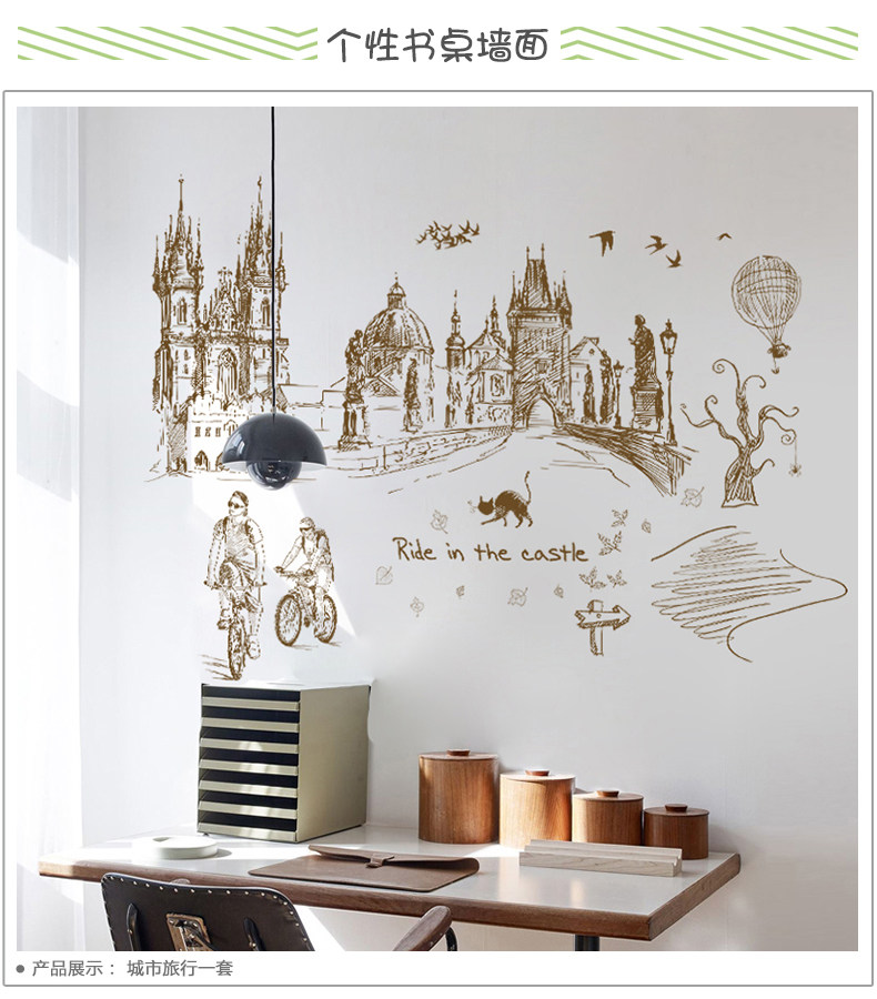 城市旅行墙贴客厅背景墙壁玄关卧室床头装饰宿舍店铺墙纸贴画自粘
