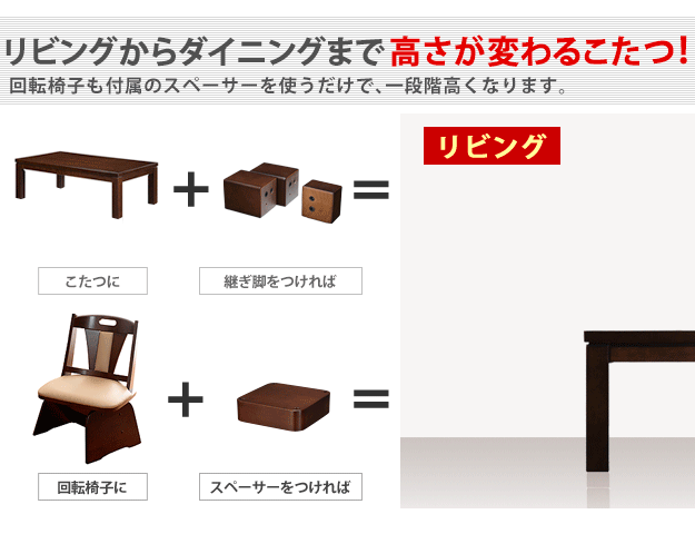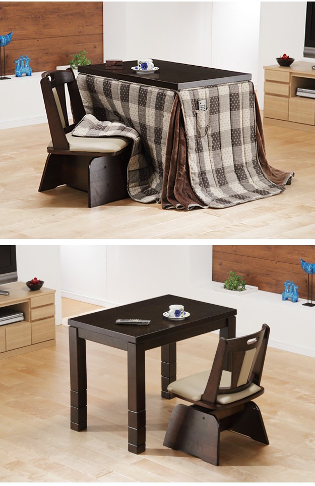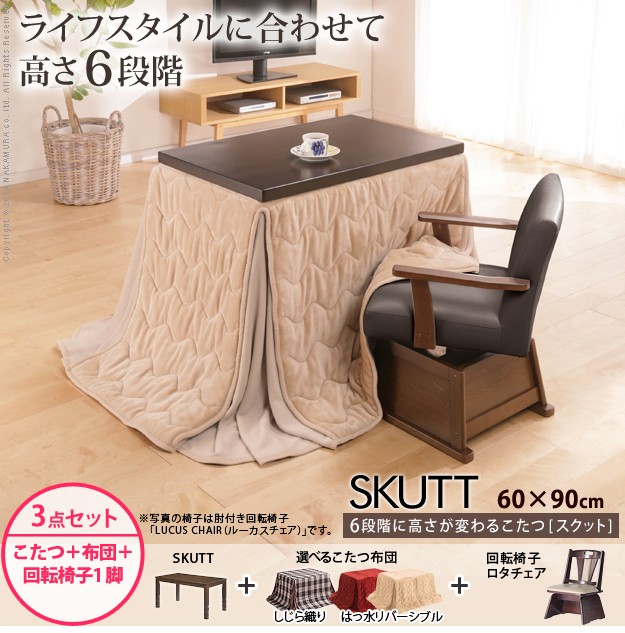 セット内容:こたつx1台、こたつ布団x1枚、肘無回転椅子x1脚