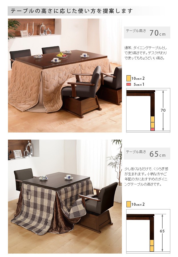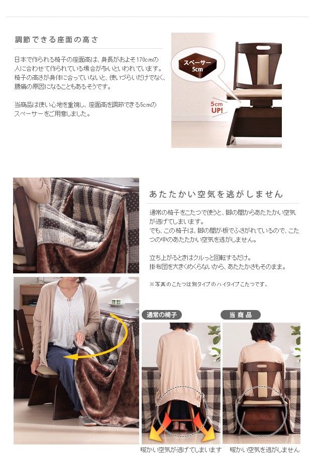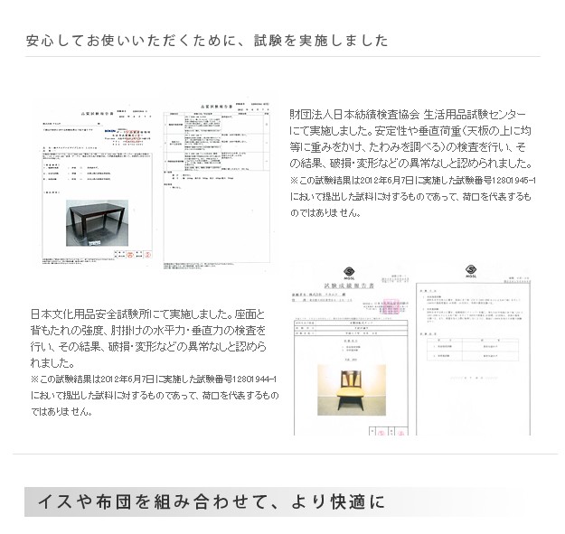 材質:こたつ天板-天然木化粧繊維板(楢)、こたつ幕板・脚部-天然木(ラバーウッド)、椅子本体-天然木(ラバーウッド)、布団表地-しじら/綿100%、レンガ・ベージュ/ポリエステル100%(撥水フランネル)