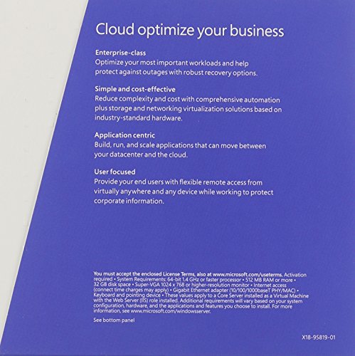 With Windows Server 2012 R2 you can scale to run your most important workloads with robust recovery options. You"ll achieve value quickly with a wide range of cost-effective, high-performance storage options and simplified delivery of multi-tenant IT services. You can build, deploy, operate, and monitor applications on-premises and in the cloud. Empower users with secure access to corporate resources on the devices they choose.Feature