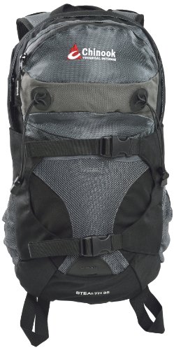 -. Binding : Sports -. Brand : Chinook -. Feature : Roomy main compartment with zippered access and deluxe waist belt with two zippered storage pockets / Two mesh side pockets, one mesh front pocket, zippered inner compartment for gear organization and hydration bladder pocket / Ice axe holders, daisy chain and two side compression straps / Padded back and shoulder straps with Air-Flow mesh and adjustable webbing / Capacity: 2135 cubic Inch (35 L) -. Label : Chinook -. Manufacturer : Chinook -. Model : 31321BK-Parent -. ProductGroup : Sports -. ProductTypeName : OUTDOOR_RECREATION_PRODUCT -. Publisher : Chinook -. Studio : Chinook -. Title : Chinook Stealth Technical Daypack