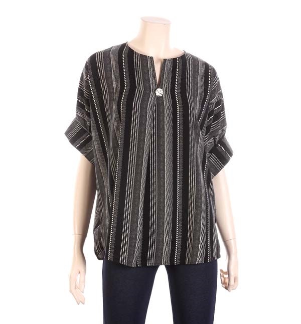 The Izzat, 라인 프린트로 캐주얼한 스타일 감각을 연출하는 블라우스입니다