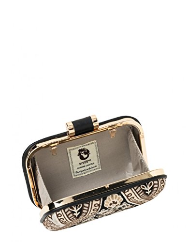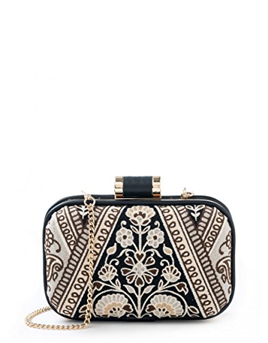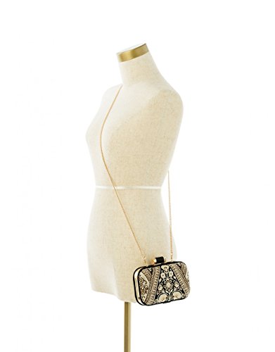 Product Description From sweater dresses to faux-fur stoles, tailored texture makes a cameo appearance with our embroidered, hard case Henna Minaudiere. The golden frame with a custom clasp steps up the wow factor, and the removable chain strap means this little darling goes from shoulder to clutch in a snap. 0