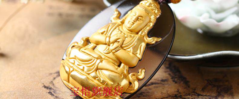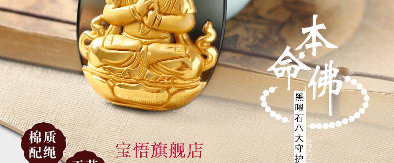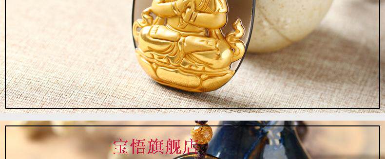 开光镀金冰种黑曜石大日如来生肖属样猴本命佛守护神吊坠男女款
