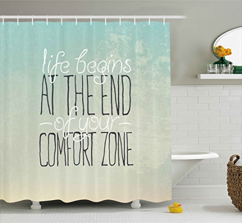 Lifestyle Decor Shower Curtain by Ambesonne, Motivational Life Begins at the End of Your Comfort Zone Quote Concept Print, Fabric Bathroom Decor Set with Hooks, 70 Inches, Mint