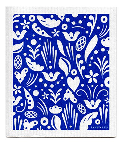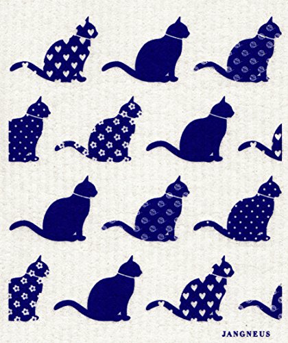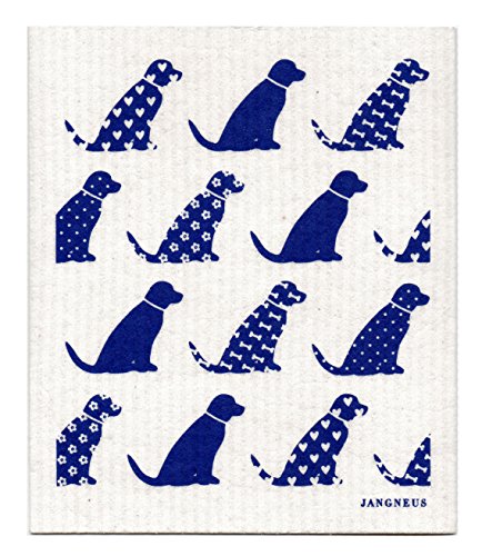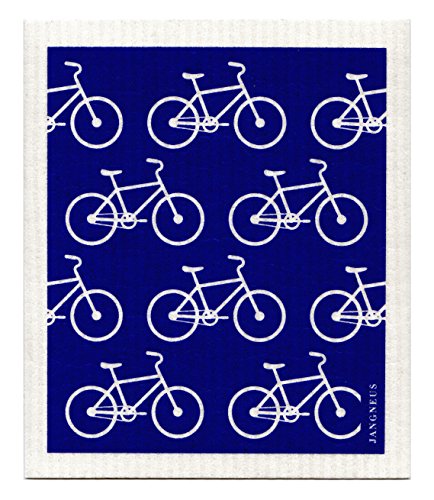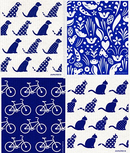 Swedish Dishcloth - Set (CX) of 4 Dark Blue Dogs + Bikes + Flowers +