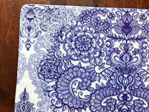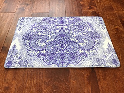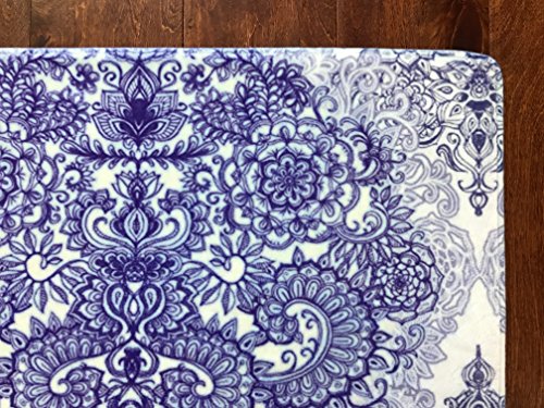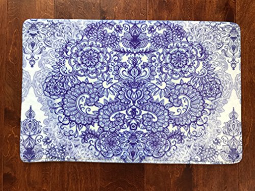 Indigo Blue and White Lotus Flower Highly Detailed Lightly Cushioned Nonslip Ornate Bathmat with Eclectic Indian Floral Patterns