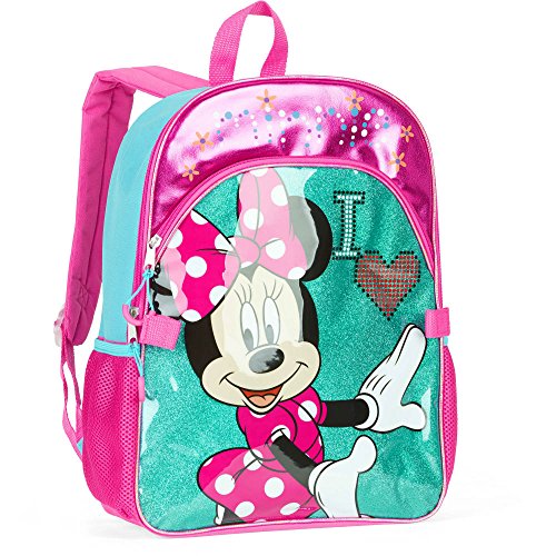 Disney Minnie Mouse 16" Full Size Backpack w/ Detachable Lunch Bag, made of 100% polyester for durability, this trendy style is great for all-round use and has a zippered main compartment & detachable lunch bag, with adjustable shoulder straps for a comfortable custom fit and a locker loop for stowing. Disney Minnie Mouse Backpack: 100% Polyester Full Size 16" Padded Shoulder Straps One Main Compartment Detachable Lunch Bag Zipper Closure Locker Loop