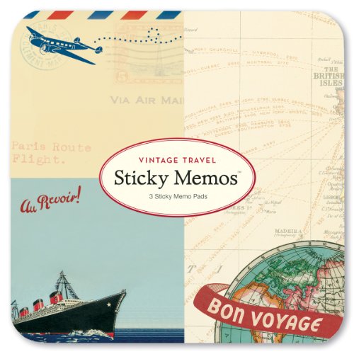 Cavallini Sticky Memo Pads Vintage Travel, 3 sticky memo pads. Charming images from the Cavallini archives.
