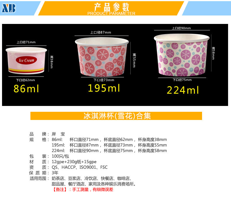 一次性冰淇淋纸碗冰激凌碗雪糕杯雪花冰激凌系列纸杯100只