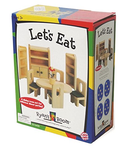 - Feature : Your child can set up a delicious pretend dinner in the doll house, with the Let's Eat Dining Room set from the Small World Ryan's Room collection / This wooden dining room set makes a wonderful addition to your Ryan's Room wooden doll house (sold separately) / 13-piece wooden set includes: dining room table, 4 chairs with cushions, hutch, 2 bookshelves and a flower for the centerpiece / Bookshelf measures 13.5''W x 1.5''D x 4.75''H; suitable for 3 years and up / For 50 years, Small World Toys has delivered fun, safe, innovative and endearing products for children of all ages
