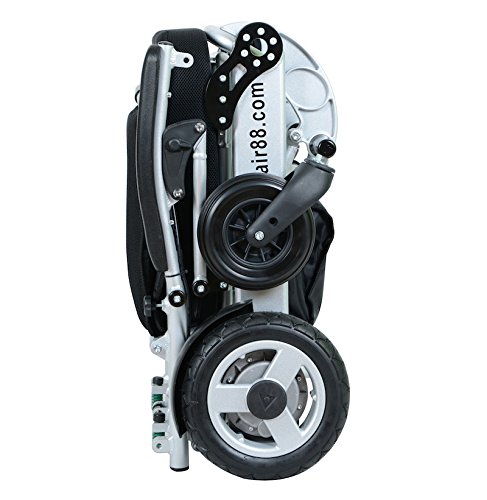 - Feature : • Foldawheel PW-1000XL is our wider version of our famous lightweight fast folding power wheelchair, designed for the Big and Tall. If you love our Foldawheel PW-999UL but have concerns due to body size or weight, and if you love to drive with faster speed, PW-1000XL would be your best choice. Normally ship within 5 days. / • Folds and opens in just 2 seconds, and it is very compact for fitting into a small car trunk. Speeds up to 11 km/hr (6.8 miles/hr). Wider seat width than our famous Foldawheel PW-999UL. Ample of room with 18" seat cushion, and 19″ between armrest. Able to carry up to 330 lbs. (Actually can be much more, but problem is if the user can sit in comforble or not). / • Weighs only 25 kg (55 lbs) with 1 battery installed. Explore 13km (8 miles) with just 1 battery, and able to carry up to 3 batteries with you for long days on the road. Each additional battery weighs just 1.4 kg (3 lbs). / • More powerful and quiet brushless motors with bigger rear tires (10"), which is just right without feeling bulky. Comes with 4 spring suspensions for better comfort on bumpy rides. The joystick controller can be easily detached for travel. / • Comes with an exclusive tough transport bag for easy traveling. You can drag it on it's large wheel while folding instead of lifting it. Bring your wheelchair with you on your next trip!