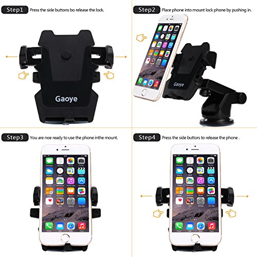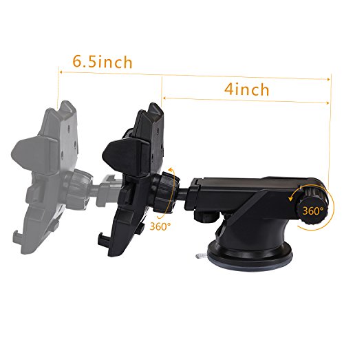 Car Accessories, Gaoye Car Mount Phone Holder Windshied Stand Universal 360 Degree Adjustable Cradle Strong Cup Holder for iPhone 7 6 Samsung Galaxy HTC Moto Sony LG Smartphones Gps Holder (Black)