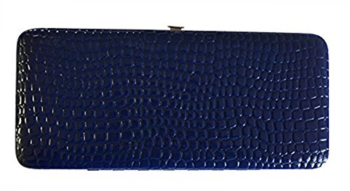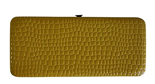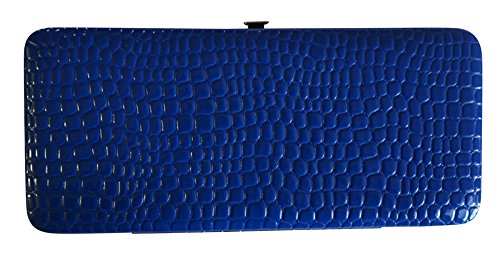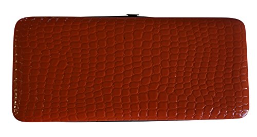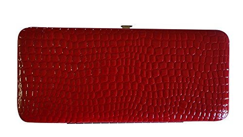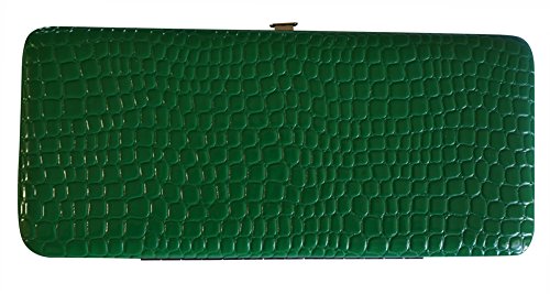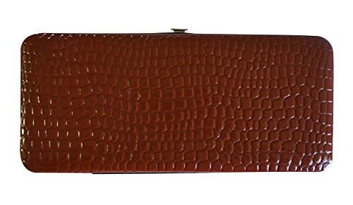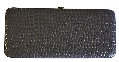 Trendy hard case clutch wallet with croc snakeskin pattern on front and back.