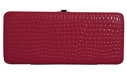 Chicastic Glossy Croc Snakeskin Pattern Faux Patent Leather Flat Hard Clutch Wallet - Pink