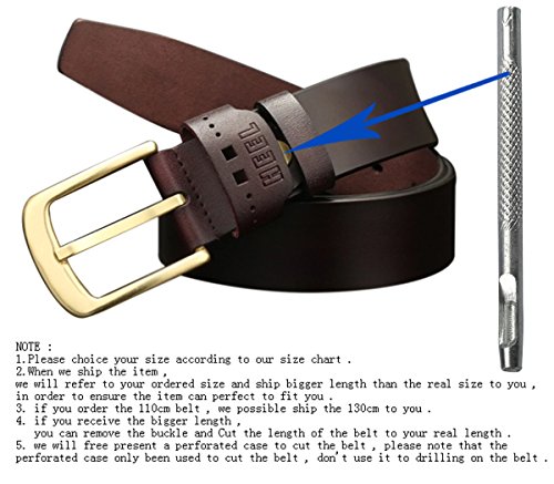 - Feature : High Quality Nature Full Grain Leather from Italian , will last longer than you can image and aged much more beautiful / Without Nickel Alloy Buckle Will Keep New All The Time , and 100% allergic free to all kind of skins. / Excellent Craftsmanship , Actually Part Of The Belt Is Made By Hand . Trim- to-fit. Stretch to a 2 inch waist size. Easy to customize to your size and super-comfortable to wear. / Classic Universal Looking will Fit All You Outfits , Dress ,Causual and more / Reversible leather belt featuring feather edge , 2 year Limited Warranty from Heel Official