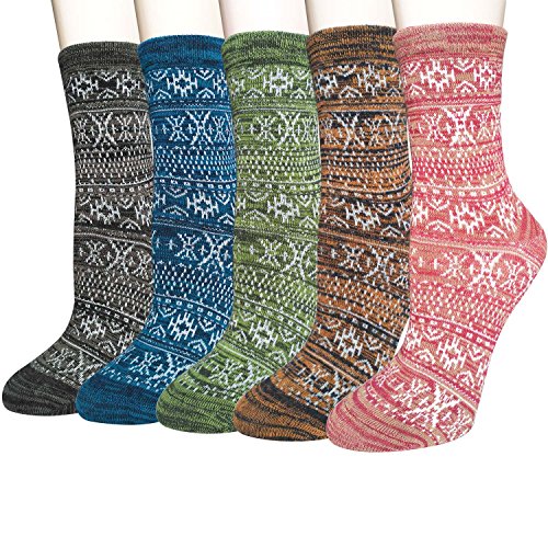 -. Feature : Packing Contents:5 pairs socks,5 different colors, bright and colorful, vintage style design / Size: fits shoe size 5-10 for women / Material: 78% Combed Cotton / 22% Polyester / Not too thick or too thin,these casual cotton socks are suitable for SP.R.Ing, Autumn, Home, Office, Every Day Use. / Mixed Knitting using rich and soft combed cotton for elasticity, anti-skidding, breathability and comfortability, good for all year wear.