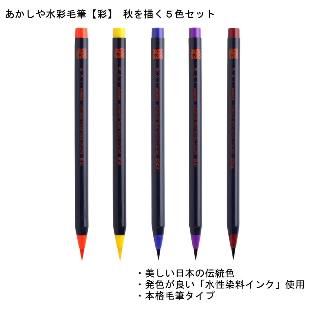 Akashiya Fude Brush Pen Sai 5 Autumn Color Set (CA200/5VC)