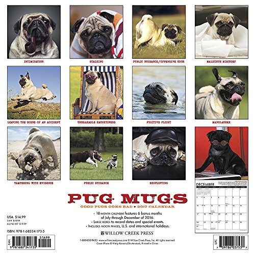 -. Title : Pug Mugs 2017 Wall Calendar