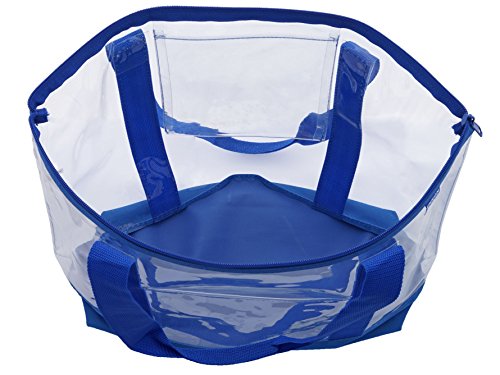 Clear ZIPPER tote with color trim and bottom, Royal trim