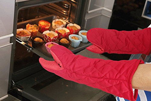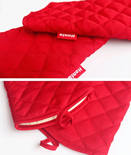- Deluxe cotton quilted & terry cloth lining oven mittens,comfortable in use,loop design for hanging.