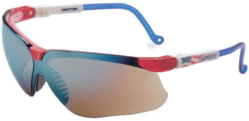 Uvex S3263 Genesis Safety Eyewear, Red/White/Blue Frame, Gold Mirror Ultra-Dura Hardcoat Lens