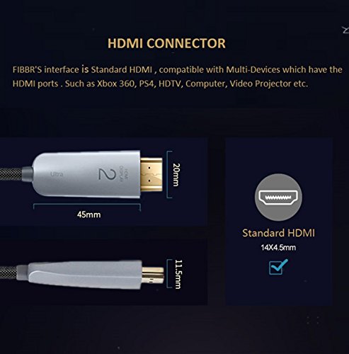 Specification: Cable diameter: 4.6 mm Cable length: 60ft (18 m) Power: No external power needed Support Transfer Rates of Up to 10Gbps Speed:Support 4:4:4 4K 4096*2160@30Hz UHD display Fiber cable is up 60% thinner and lighter than traditional copper cable No radiation, safe for everyone in the family Easy to use, connect-light and smart status indicator
