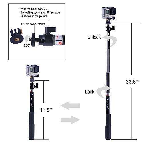 Selfie stick allows quick length adjustments from 11.8″to 36.6″. Simply twist counter clockwise to release, choose your desired length, and twist clockwise to lock