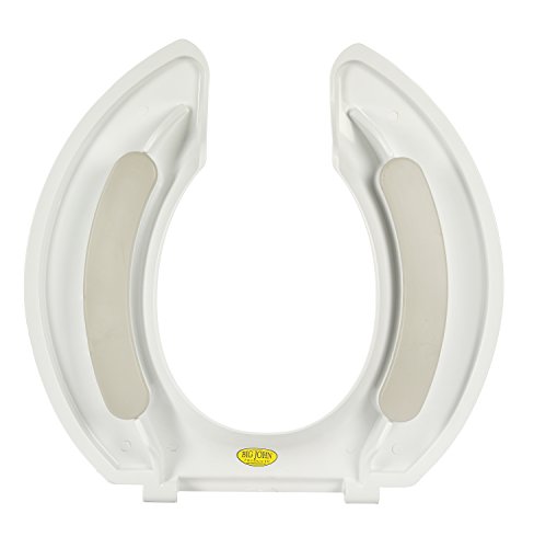 -. Feature : Big John Open Front 1200 Lb. Capacity Toilet Seat Without Cover, White / 2-1/2 In. rise / The product is manufactured in United States / UNIVERSAL FIT: Our Big John Oversized Toilet Seat with Stainless Steel Hinges is the universal solution for any toilet seat. Featuring a design crafted to work on both round or elongated seats, the Big John Oversized Toilet Seat with Stainless Steel Hinges is the only toilet seat you'll need. / STABILIZING BUMPERS: The Big John Oversized Toilet Seat with Stainless Steel Hinges employs stabilizing synthetic rubber bumpers that grips the porcelain, keeping the seat from shifting while providing excellent transfer assistance. / STAINLESS STEEL HINGES: Built with stainless steel hinges that provide unbreakable strength, the Big John Oversized Toilet Seat can support weight of up to 2000 pounds, making it a suitable toilet seat for any individual. / ERGONOMIC DESIGN: We know how unacceptable an uncomfortable toilet seat design would be. That's why our Big John Oversized Toilet Seat with Stainless Steel Hinges features a stylish, ergonomic design with a more comfortable opening and a luxuriously contoured sitting surface that is roomier than any other toilet seat on the market. / SPECIFICATIONS: Package includes 1 Big John Oversized Toilet Seat with Stainless Steel Hinges. Product dimensions: 20 in x 20 in x 4 in. Weight: 6.5 lbs.