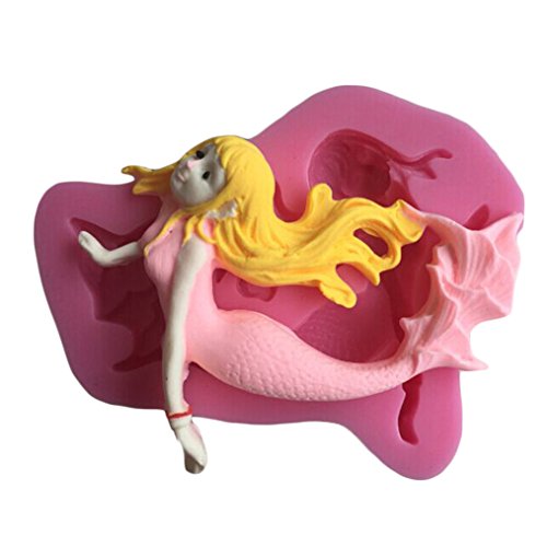 FLY 3D Mermaid Shape Silicone Fondant Mold for Cake Decoration,Pink