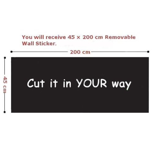 - Feature : Chalkboard Decal can be applied to any smooth surface. Self-adhesive, water resistant and removable. / To write notes, make to do lists, play games...The possibilities are endless. Chalkboard decal works with both chalk and chalk-ink markers. / Decal can be cut into smaller chalkboards or multiple decals can be combined to create a giant chalkboard. The texture of the wall sticker is smooth (not like a rough surface like normal classroom blackboard!) / Material: Quality CPP water resistant and removable. Color: Black. Size: Measurement: W: 45 * H: 200 cm, Typesetting: W: 45 * H: 200 cm. / Package Include: 1 Sheet Wall Sticker as typesetting size (chalk not included). Note: Chalk is not included. Chalk used by children is recommended under the guidance of the guardian.