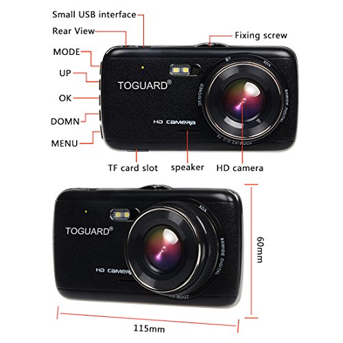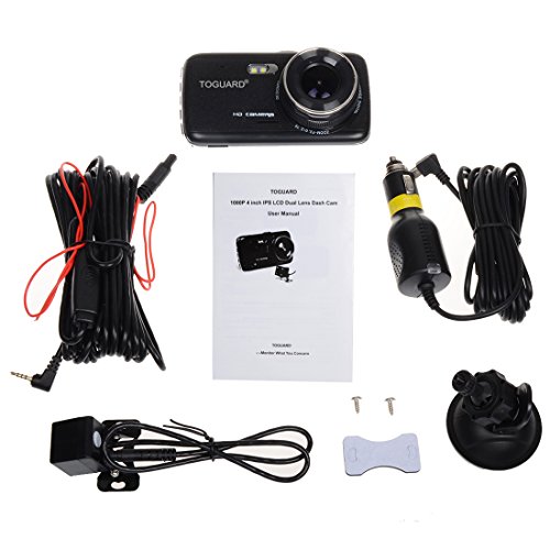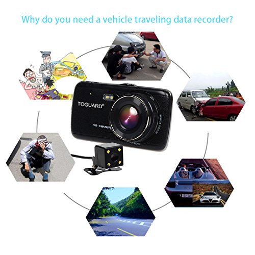 TOGUARD Dual Lens Dash Cam front and rear recording ATST, 4.0'' IPS Screen,HD 1080P Car Dash Camera, Rearview Backup Camera,130 Degree Wide Angle, WDR, Loop Recording, G-sensor, Parking monitor