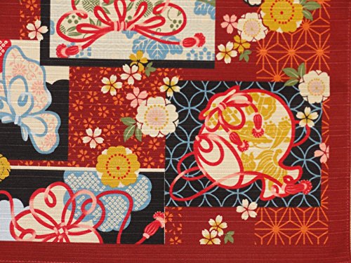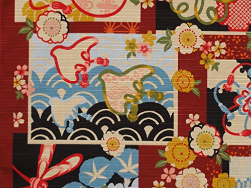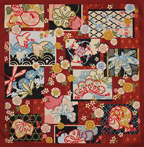 Furoshiki Wrapping Cloth Traditional Patterns on Deep Red Motif Japanese Fabric 50cm