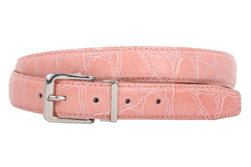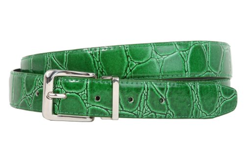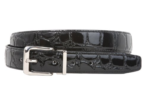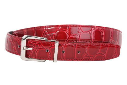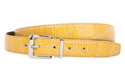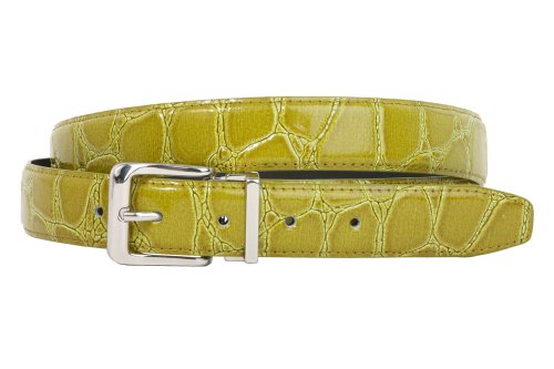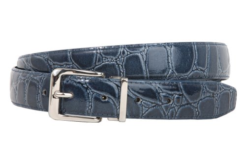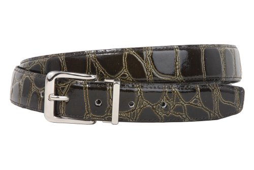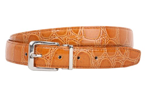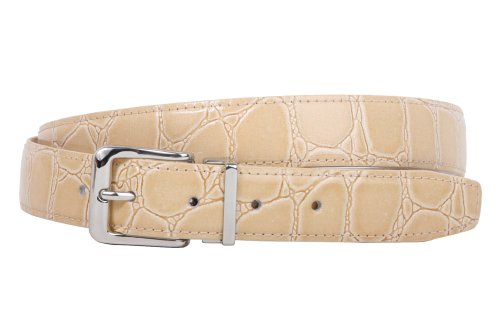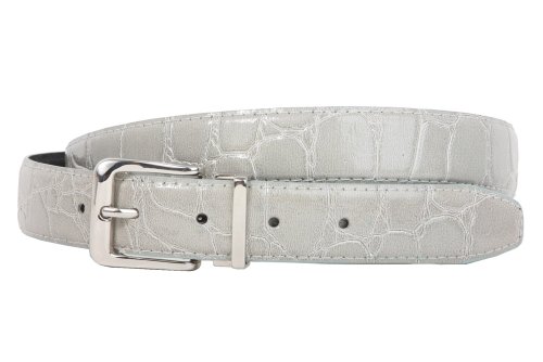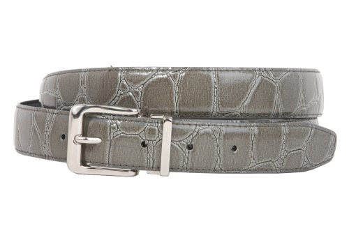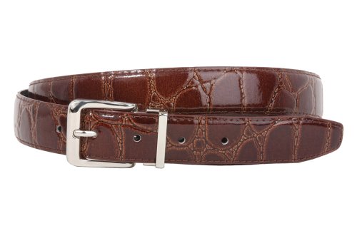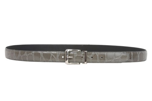 -This one-size-fits-all feather edged croco print belt strap fits 1 1/8" removable clamp on buckle.