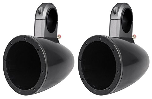 -. Feature : (2) Polk Audio DB652 6.5" 300 Watt Car Audio Marine/ATV/Motorcycle/Boat Speakers. High performance audio upgrade that delivers signature quality sound that goes beyond OEM factory systems. Marine certified with IP65 rating (water- and dirt-resistant) and tested for salt-fog, UV and humidity / Polypropylene and UV tolerant cone with waterproof inner and outer surrounds. Simple drop-in installation for any vehicle including cars, boats, ATVs-you name it. Zero tweeter protrusion and reduced mounting depth for a precise fit / Dynamic Balance technology offers a rich, clean, full-range sound. ¾", 20mm Tweeter ensures clear, balanced mids and highs. 100 Watts at Continuous Power; 300 Watts at Peak Power. Pair of Kicker 12KMTES 6.5" Marine Speaker Enclosures / Each Enclosure Holds One 6.5" Marine Speaker. Tough ABS, weather-proof empty enclosures with slotted mounting holes for different bolt patterns. Enclosures feature a nine-degree axis rotation in either direction for aiming maximum sound quality / Aluminum tower-pipe clamps (2-5/8") with three adapter sizes (2-1/4", 2-3/8", 2-1/2"). Durable, stainless-steel push-type connectors. Includes mounting hardware and polyfill. KMTAP adapter pack (sold separately) fits more pipe diameters. Accepts all KICKER 6-1/2-inch component speakers, coaxials and horns