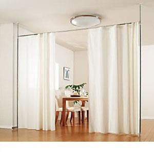 | 本体は突っ張り式になっていて天井にビス、釘等を使用せず簡単にカーテンを引くことができ間仕切り効果を得られます。 |
