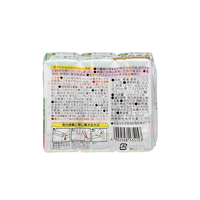 원본상품명: ピジョン ??色野菜&ぶどう100 (125ml×3コパック)×4個
