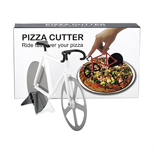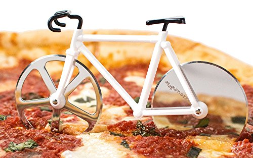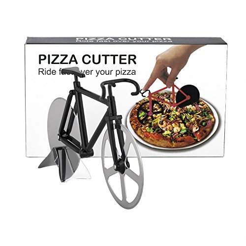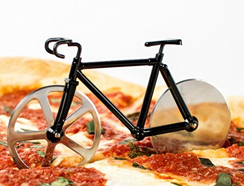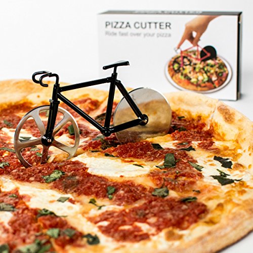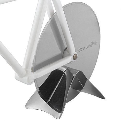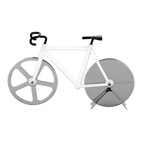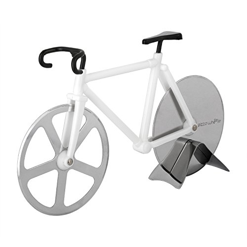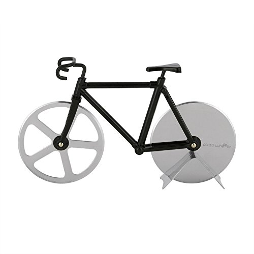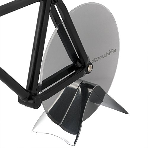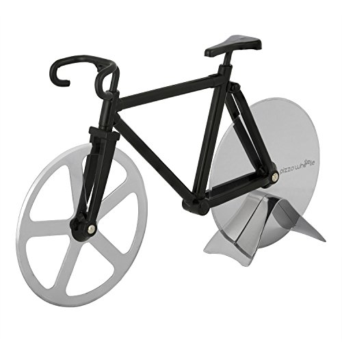 Bicycle Pizza Cutter - Original PIZZA WHEELIE - Dual Stainless Steel Bike Wheels- Includes Kitchen Display Stand