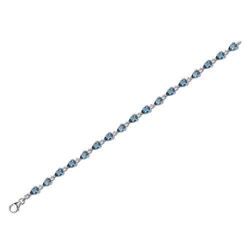 Gemstones: Genuine London Blue Topaz: 17 pieces, Pear Shape 6 x 4 mm. 6.75 carats total weight. White Cubic Zirconia: 17 pieces, Round Shape 2.50mm. Gemstones have a deep rich color and tremendous fire. Bracelet: 12.60 grams Pure Sterling Silver Rhodium Nickel Finish with .925 stamp 7 1/4 length, 1/4 width. Bracelet features one of a kind design with a beautiful White Gold finish. 100% Money Back Guarantee. Includes a Signature Gift Box.Feature