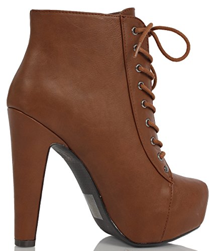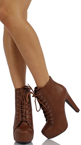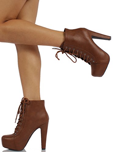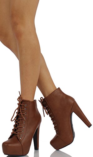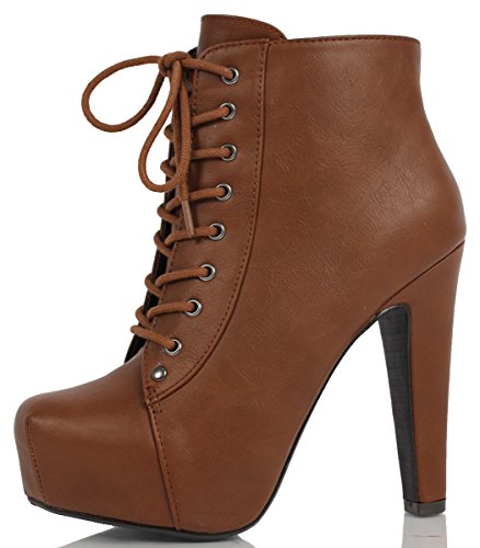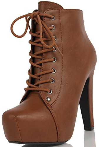 Binding : Apparel Product Description Slip into gorgeous sleek tan leatherette ankle boots featuring lace-up closure, non-skid soles, and padded cushion. Platform 1 1/4" and 5" heels. Shaft height including heels 9 ". Opening circum. 10 1/2" ( size7) 0