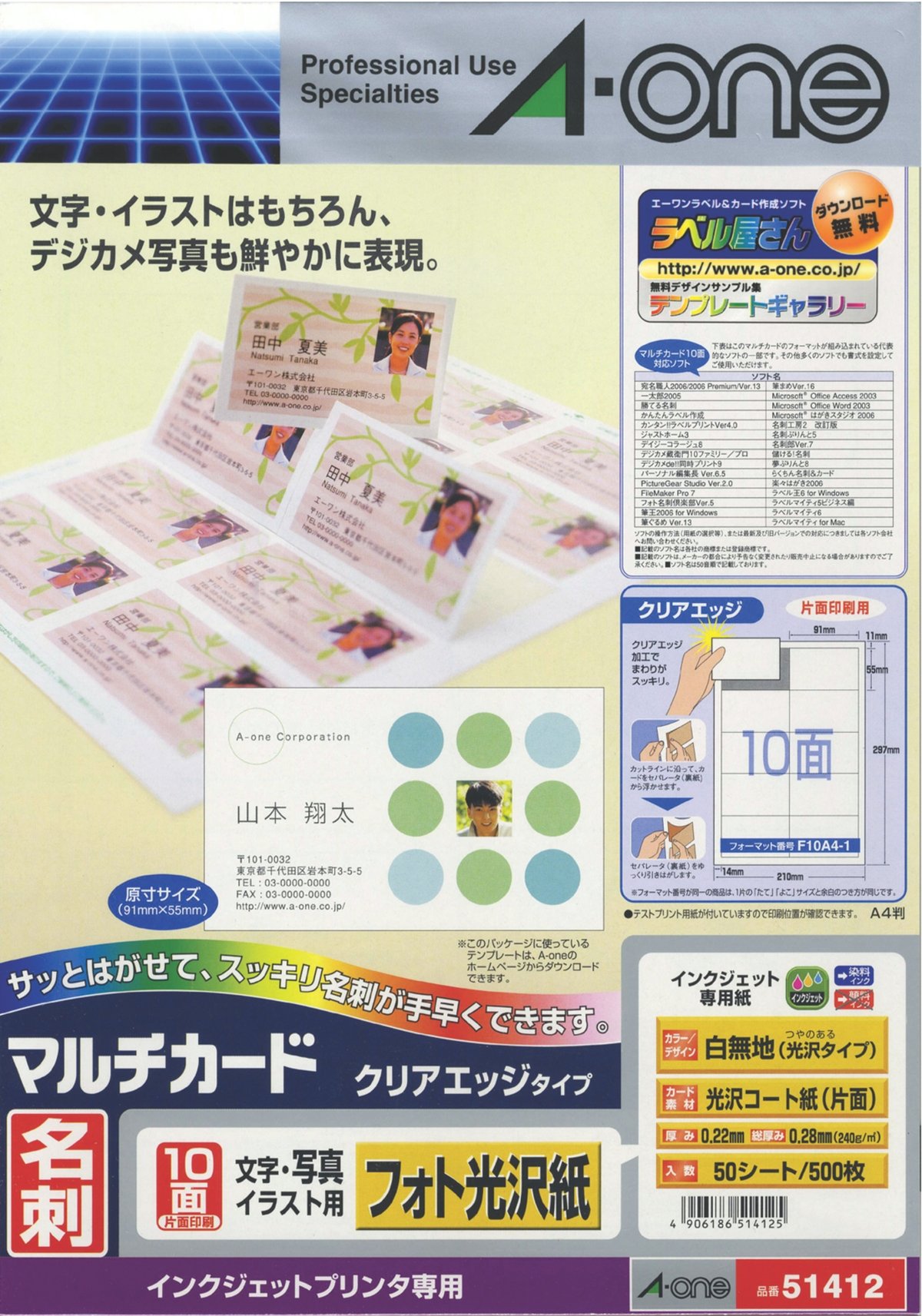 -One A4 size 10 sided business card size (A-one) multi-card inkjet printer special paper clear edge type glossy photo paper 50 sheets (500 sheets) 51 412 (japan import)