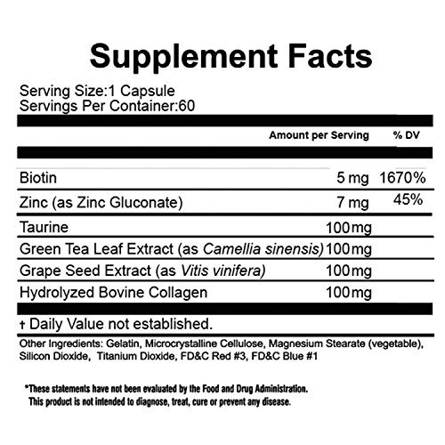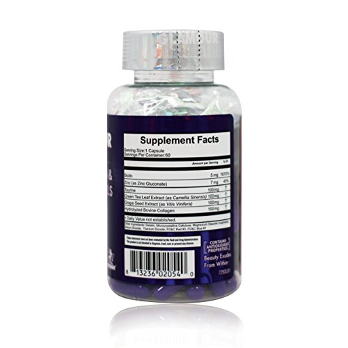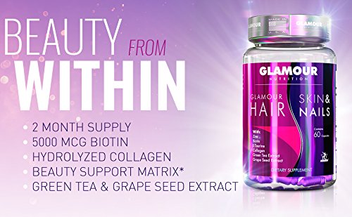 ReleaseDate : 2017-08-14 Studio : Midway Labs USA Publisher : Midway Labs USA Binding : Health and Beauty Product Description Beauty Comes from Within and with this concept in mind, GLAMOUR NUTRITION has developed the ultimate beauty support formulation: Glamour Hair, Skin Nails. Developed by Midway Labs USA scientific council, the formulation contains a powerful and strong blend of ingredients such as Biotin, Collagen, Zinc Antioxidants designed to bring out your natural beauty. Convenient and practical to take, 1 capsule a day, 2 months supply! Get ready for a more beautiful, strong and healthy you. 0