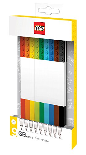 -. Feature : Ink Color: Multi-Colored / Tip Diameter: 0.7 mm / Includes 9 gel-ink pens that each measure 6.2" height / This 9-pack is a variety of red, orange, yellow, lime, green, light blue, blue, brown, and black LEGO brick features / Recommended for ages 6 years and older