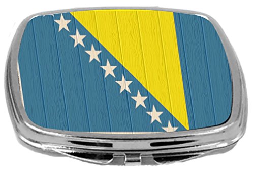 Rikki Knight Compact Mirror on Distressed Wood Design, Bosnia and Herzegovina Flag, 3 Ounce