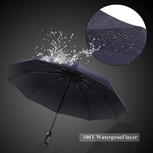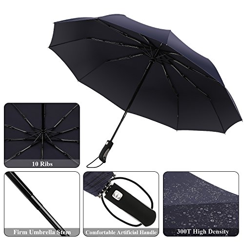 -. Title : Umbrella Punming Compact Auto Open & Close One Handed Operation 300T 10 Ribs Waterproof Fabric Anti-UV Folding Umbrella Canopy 60 MPH Windproof Travel Folding Umbrella