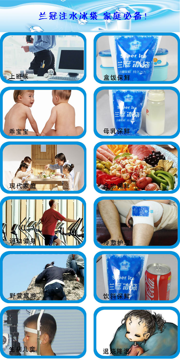 The Ice Pack is made of nontoxic biological material. It is an ideal substitute of ice cubes, dry ice and other cold producing medium. The product can be used for Physical therapy, cold storage and transportation for milk, food and drink.
