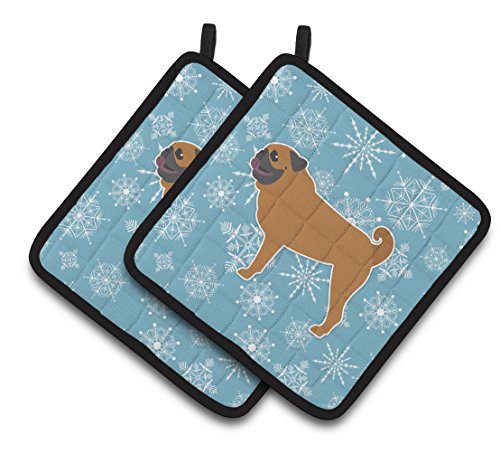 Caroline's Treasures Winter Snowflake Pug Pair of Pot Holders BB3547PTHD, 7.5HX7.5W, Multicolor