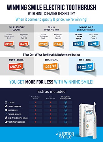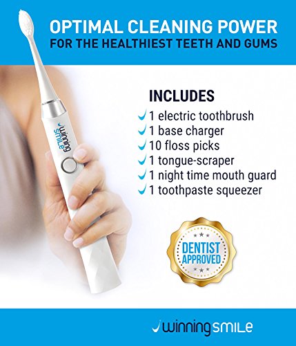 -. Title : Rechargeable Power Electric Toothbrush - Complete Dental Kit for Adults - 2 Heads, Floss Picks, Tongue Scraper, Toothpaste Squeezer and Nighttime Mouthguard - Best Sonic Power Cleaning Technology