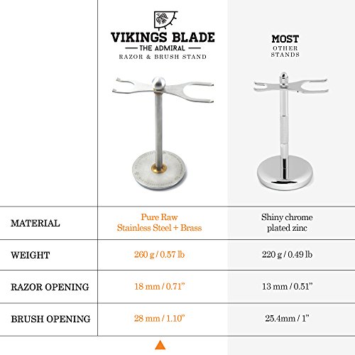 VIKINGS BLADE The Admiral Razor and Brush Stand, Extra Wide Openings, Heavy & Raw Stainless Steel